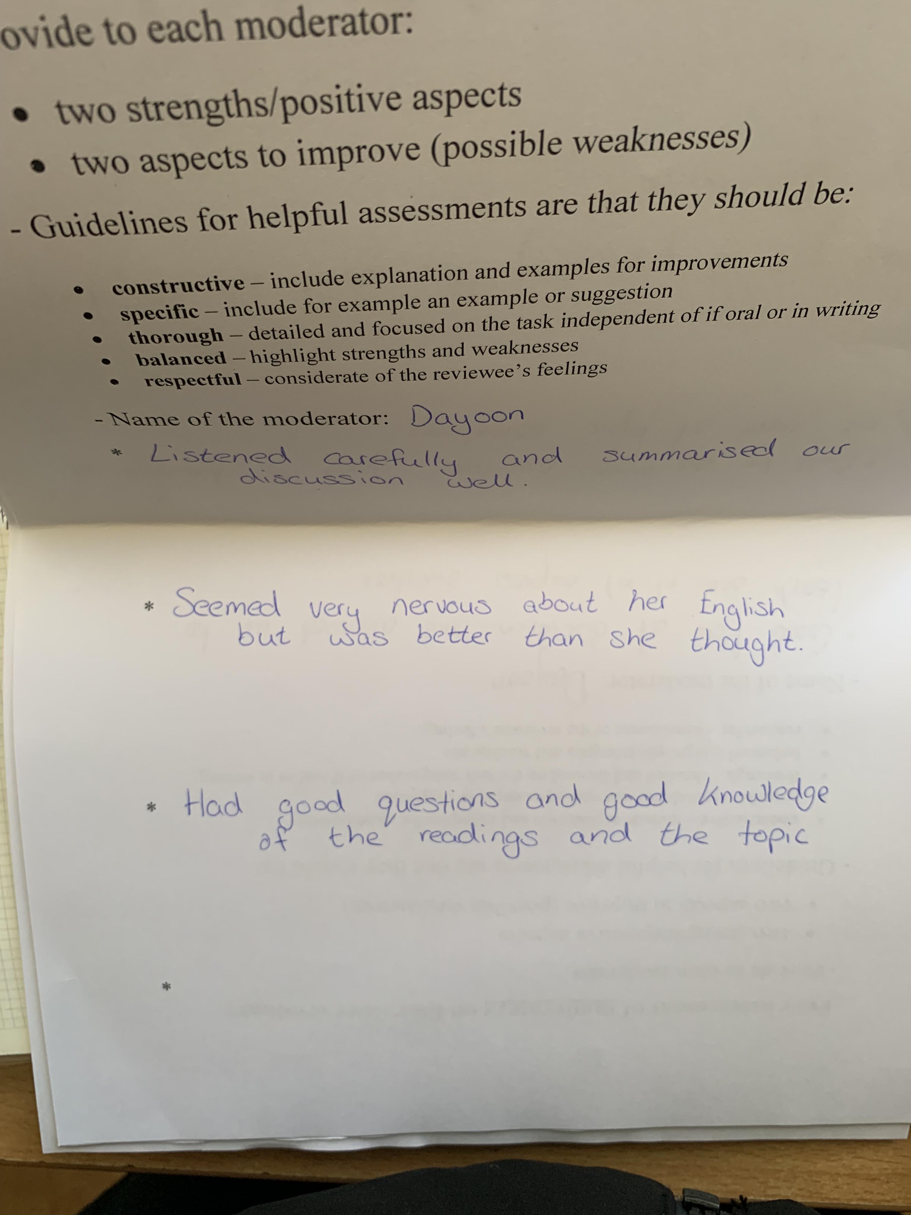 모더레이터는 세미나 후에 동료들의 피드백 종이를 받게됩니다. 방에 돌아와 떨리는 손으로 종이들을 넘겨봤는데, 다들 너무나도 따뜻한 말을 해줘서 약간 울컥했습니다. 종이를 넘기다 마음이 따가워지는 글을 읽었는데, 알고 보니 그 종이는 제가 스스로에게 남긴 피드백 종이였습니다. 영어 공부에 진심으로 전력을 다해야겠다는 생각을 하게 된 날이었습니다.