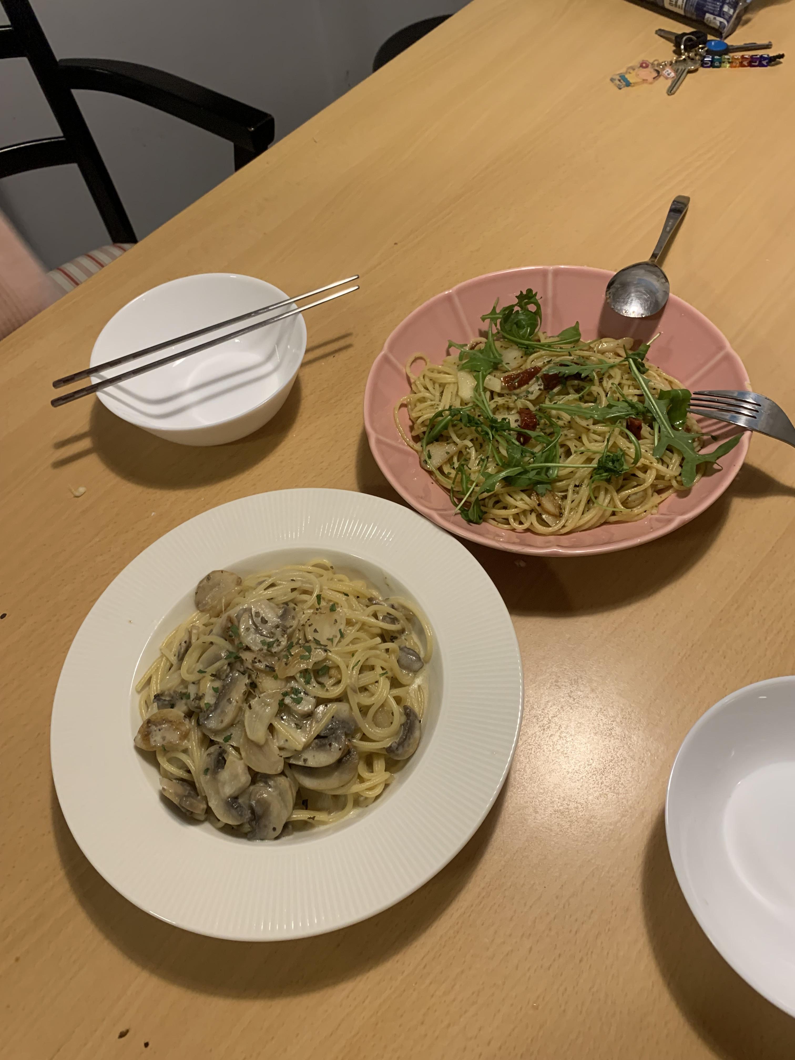 운동을 마치고 지쨩과 이카에 들러 파스타 재료를 산 뒤 제 코리도어 주방에서 파스타를 만들어 먹었습니다. 좀 많이 만들었는데, 둘 다 배가 고팠어서 하나도 안 남기고 싹쓸이를 했습니다. 중간에 지쨩이 김치와 요거트를 가져와 같이 나눠먹었는데요, 2주 만에 먹는 김치는 정말 상큼했습니다.