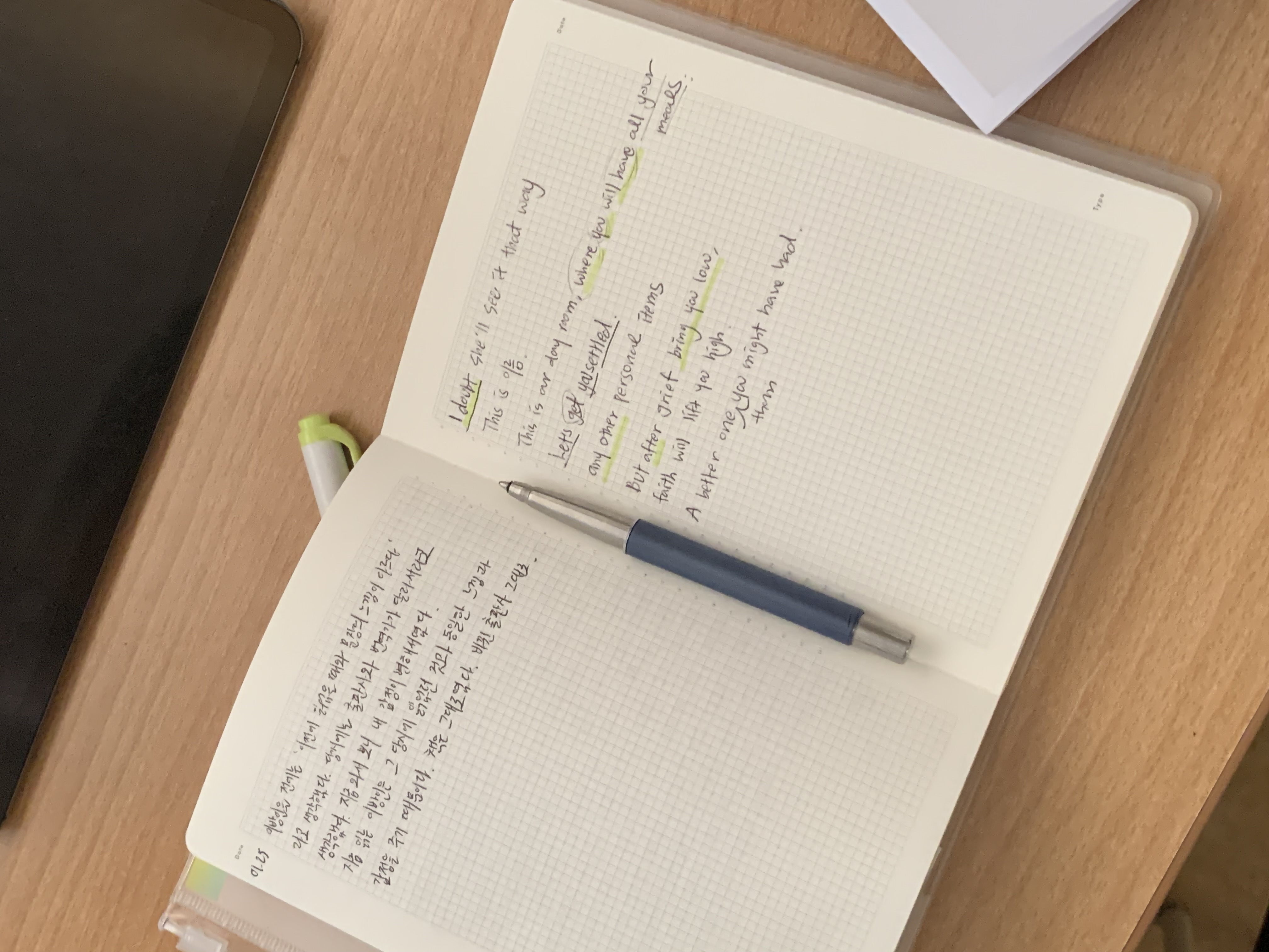 수업이 끝난 뒤 교수님께 가볍게 영어에 대한 고민을 상담했습니다. 교수님은 많이 말하는 방법밖에 없다면서, 자신은 집에서 아이들과 일부러 영어로 대화한다고 말씀해주셨습니다. 그 아이들은 정말 복 받은 것 같습니다. 사실 이미 정답(해야 할 액션)을 알면서도 괜히 칭얼댄 것이었기 때문에.. 교수님의 말씀에 그저 끄덕일 뿐이었습니다. 집에 돌아가는 길에는 평소처럼 음악을 듣지 않고 구독하는 영어 팟캐스트를 재생해 집중해서 들었습니다. 1.5배속으로 들으면서요.