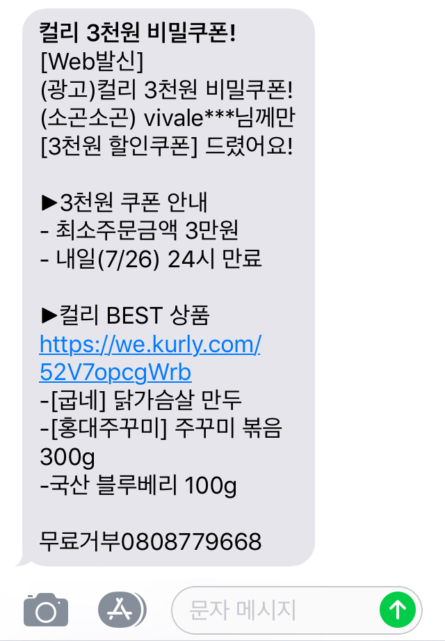 나의 경우 한 달에 두 번 이상씩은 꼭 쿠폰 문자가 오는 것 같다. 쿠폰의 종류도 가지각색이다.