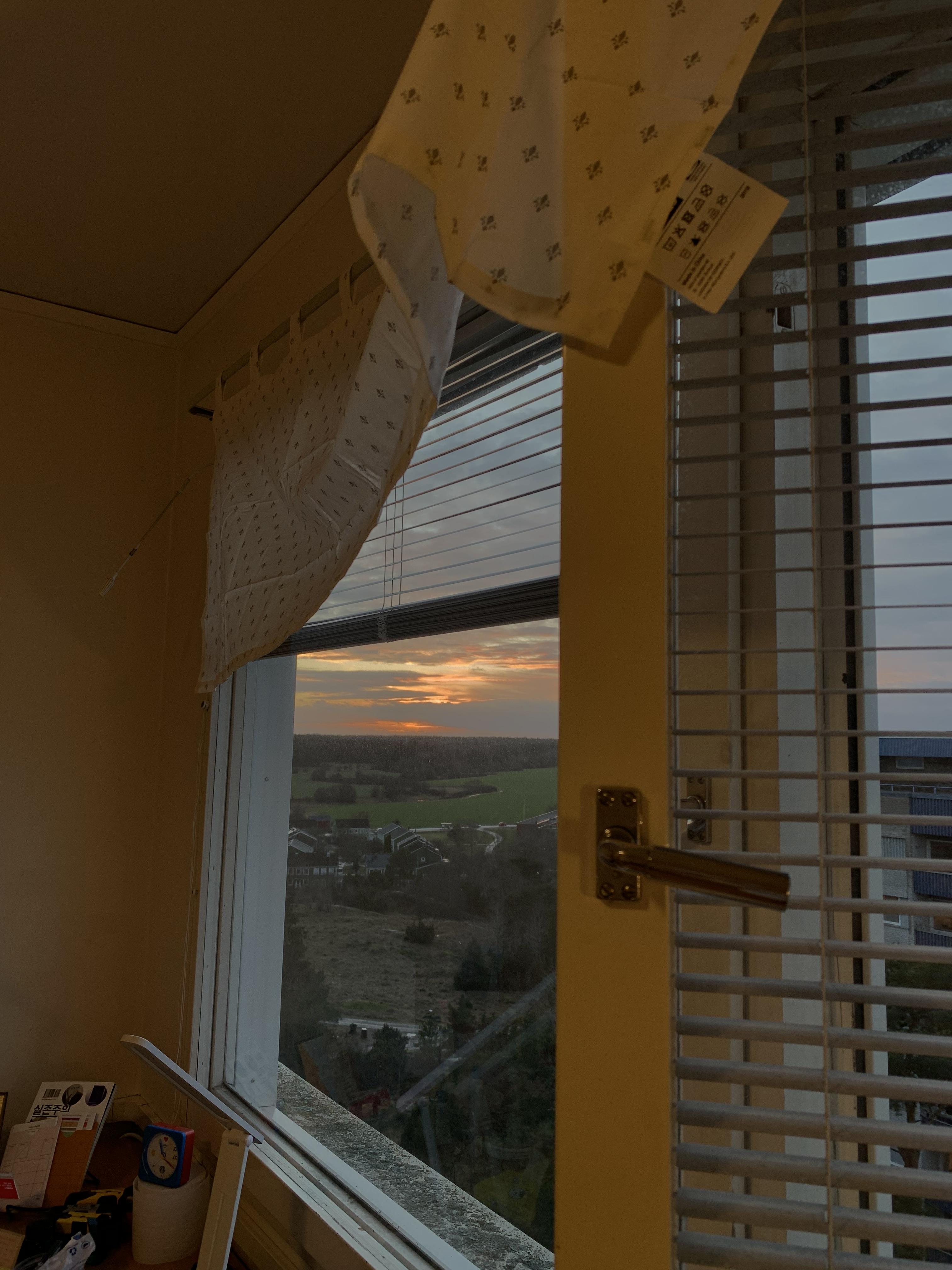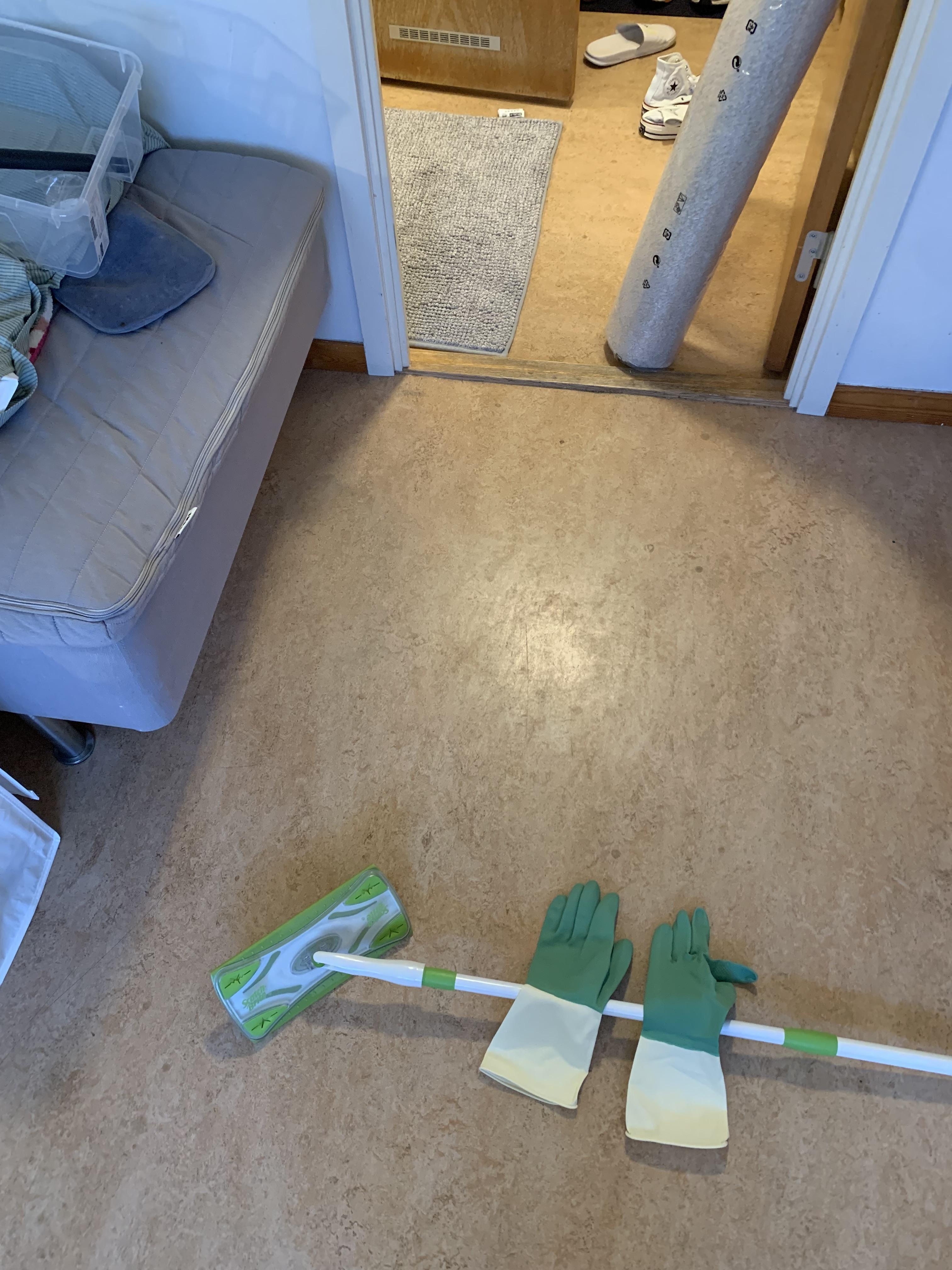러그를 깔기 위해 바닥 청소를 시작했습니다. 빈쨩한테 빌린 밀대와 이케아에서 사 온 장갑으로 중무장을 하고 무작정 쓸고 닦았습니다. 만족스러울 정도로 닦고 나니 해가 뉘엿뉘엿 지고 있었습니다. 측면으로 보이는 풍경이 참 예쁘다는 생각을 했습니다. 러그 밑에 전기장판을 깔면 뜨뜻한 러그를 만들 수 있지 않을까 생각했지만 이 아이디어는 실패했습니다. 하나도 안 따수웠기 때문입니다.