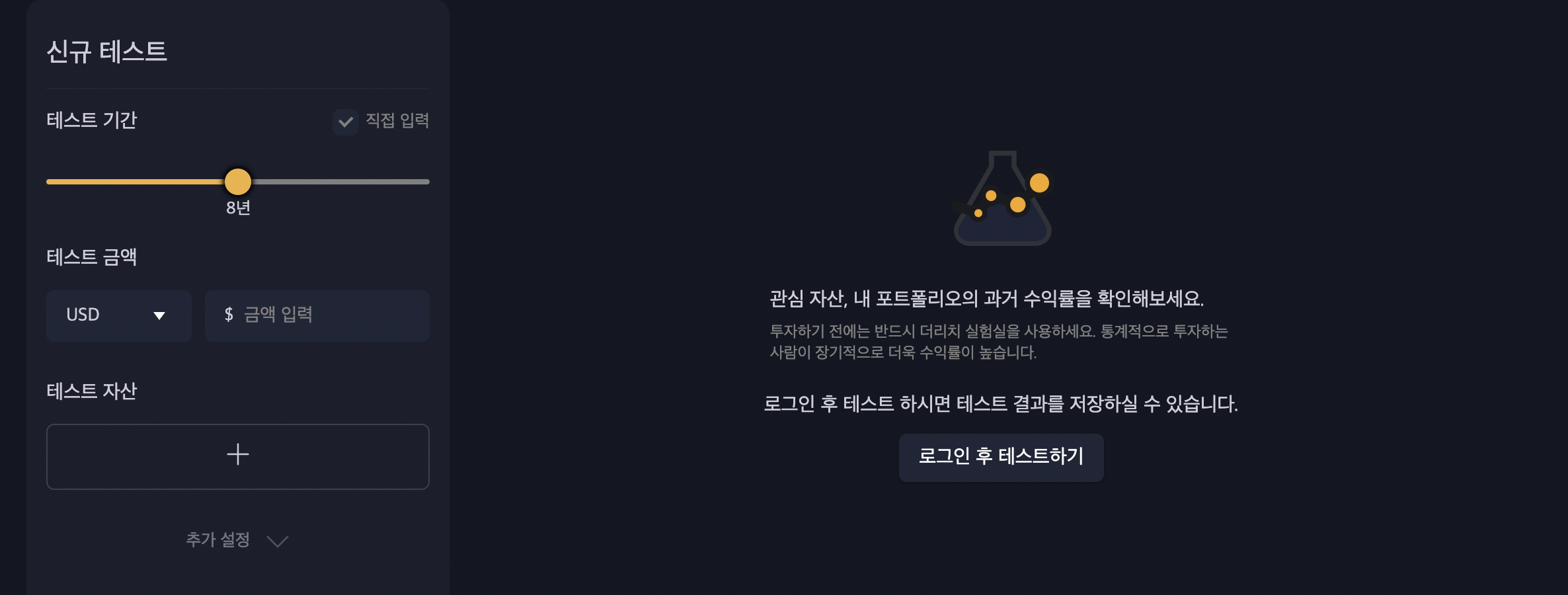 페이지의 가장 넓은 면적을 차지하고 있으나 차트에 종목을 입력하거나 심리 테스트 페이지로 넘어가는 것 외에